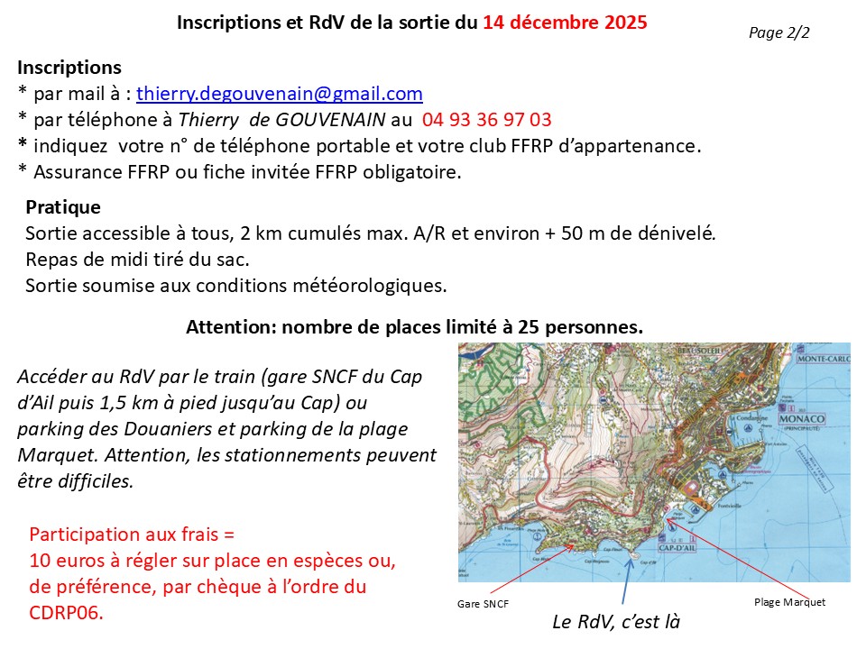 Inscriptions et RdV de la sortie du 14 décembre 2025